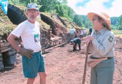Here, Jim consults with Forest Service archaeologist Ruth Brinker.