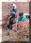 Jim Sconyers has been leading a continuing Sierra Club project to help restore a bank of historic coke ovens near Thomas, West Virginia. These ovens, nestled along the Blackwater River and adjacent rail trail, converted coal from the nearby mines into high grade fuel for the iron industry during the last century. I wasn't able to work there the week of the project, but I drove up on a beautiful August Saturday and snapped these shots of the group hard at work.