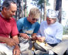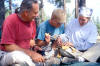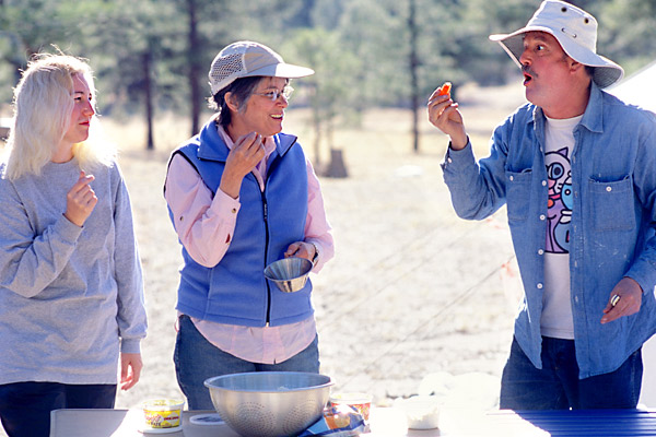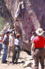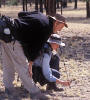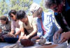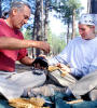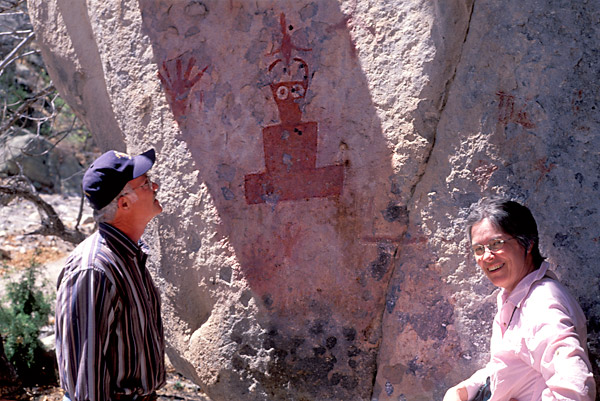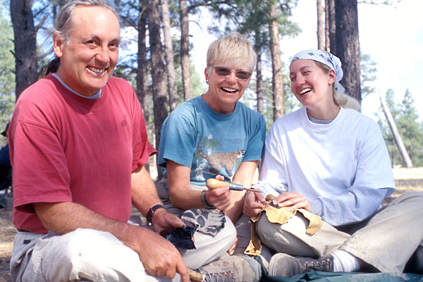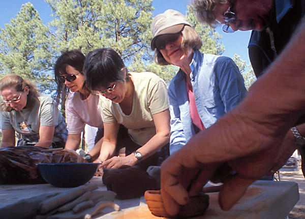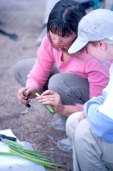 stripping flesh from a yucca leaf provides a feathery brush for decorating our own pottery. |